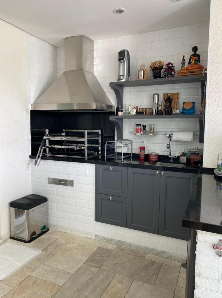 Ar condicionado nos quartos e sala. Venezianas automatizadas. Varanda gourmet com churrasqueira em acabamento Ornari, com piscina aquecida com jacuzzi e iluminação em led, sendo a varanda fechada em toda sua extensão com cortina de vidro.
