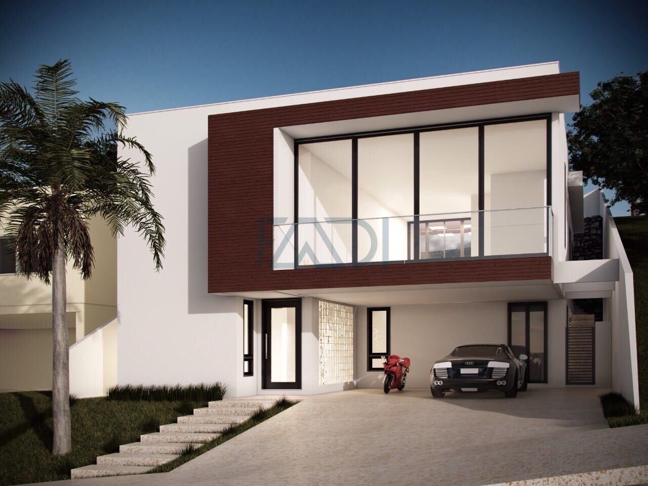 Rampa de acesso a garagem: placas de concreto com revestimento em fulget na cor a ser definida.