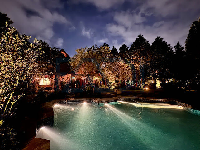 - Piscina em pedras naturais integrada ao jardim.