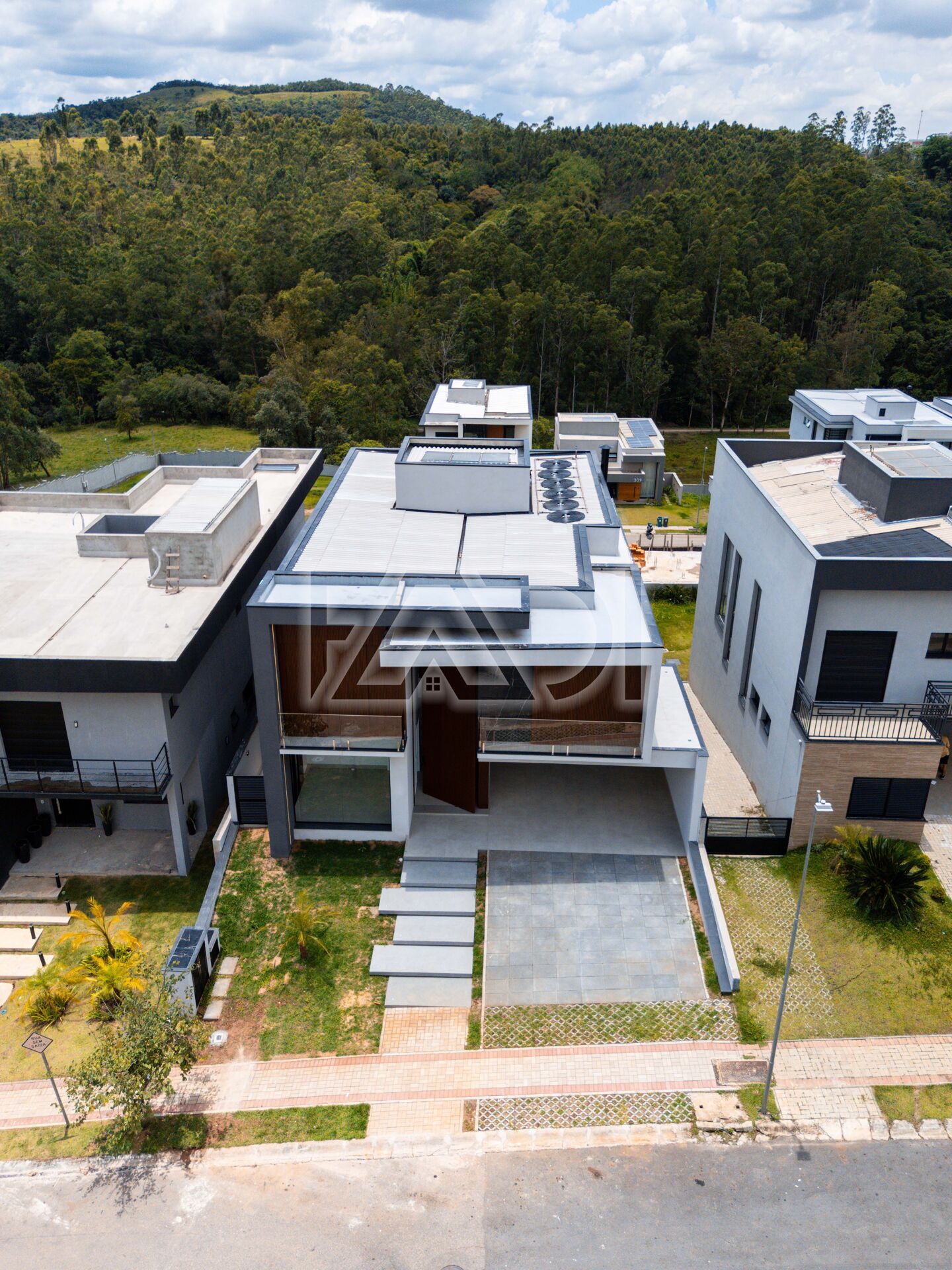6)Ripados em alumínio na fachada (porta, varanda das 2 suites superiores frente e garagem) cor Cerejeira Real.
