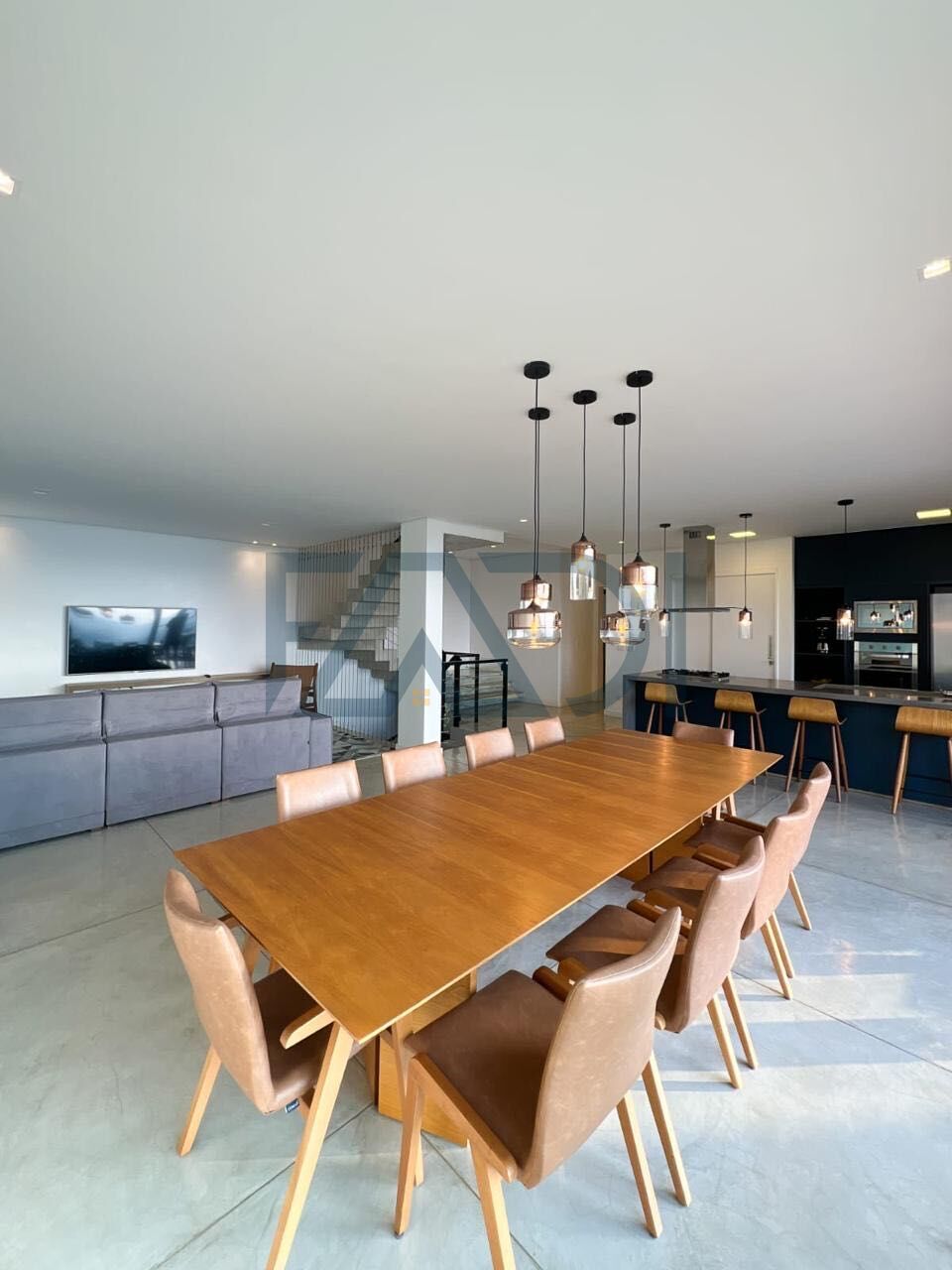 🏠 Ambientes integrados entre sala de estar, sala de TV, escritório e cozinha planejada, com acesso à varanda gourmet com churrasqueira e piscina com borda infinita, todos voltados para a vista panorâmica. Cozinha com ilha e despensa.