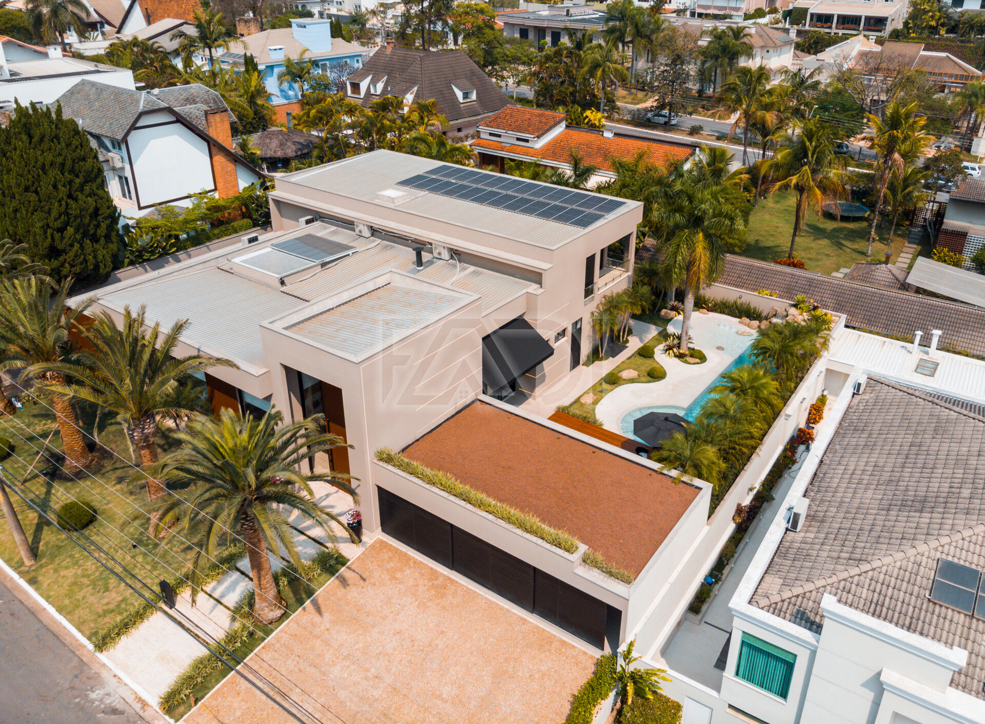 Garagem ampla para 4 carros cobertos;