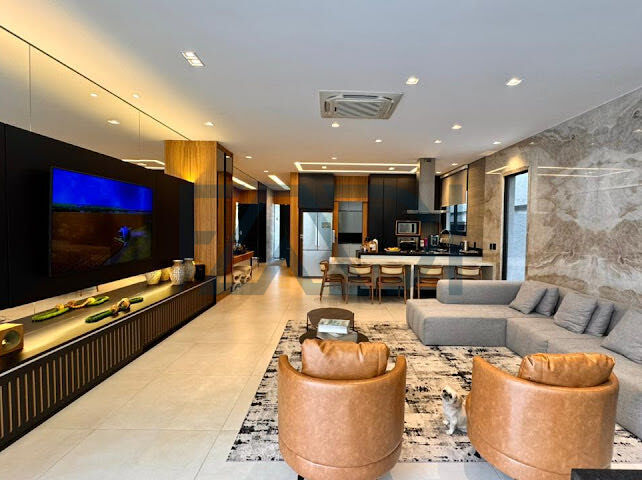 São 240 m² de área construída em um terreno de 420 m², com uma planta inteligente e muito bem distribuída. A residência conta com 3 suítes amplas, ambientes integrados, bem iluminados e projetados para oferecer praticidade no dia a dia sem abrir mão do requinte.