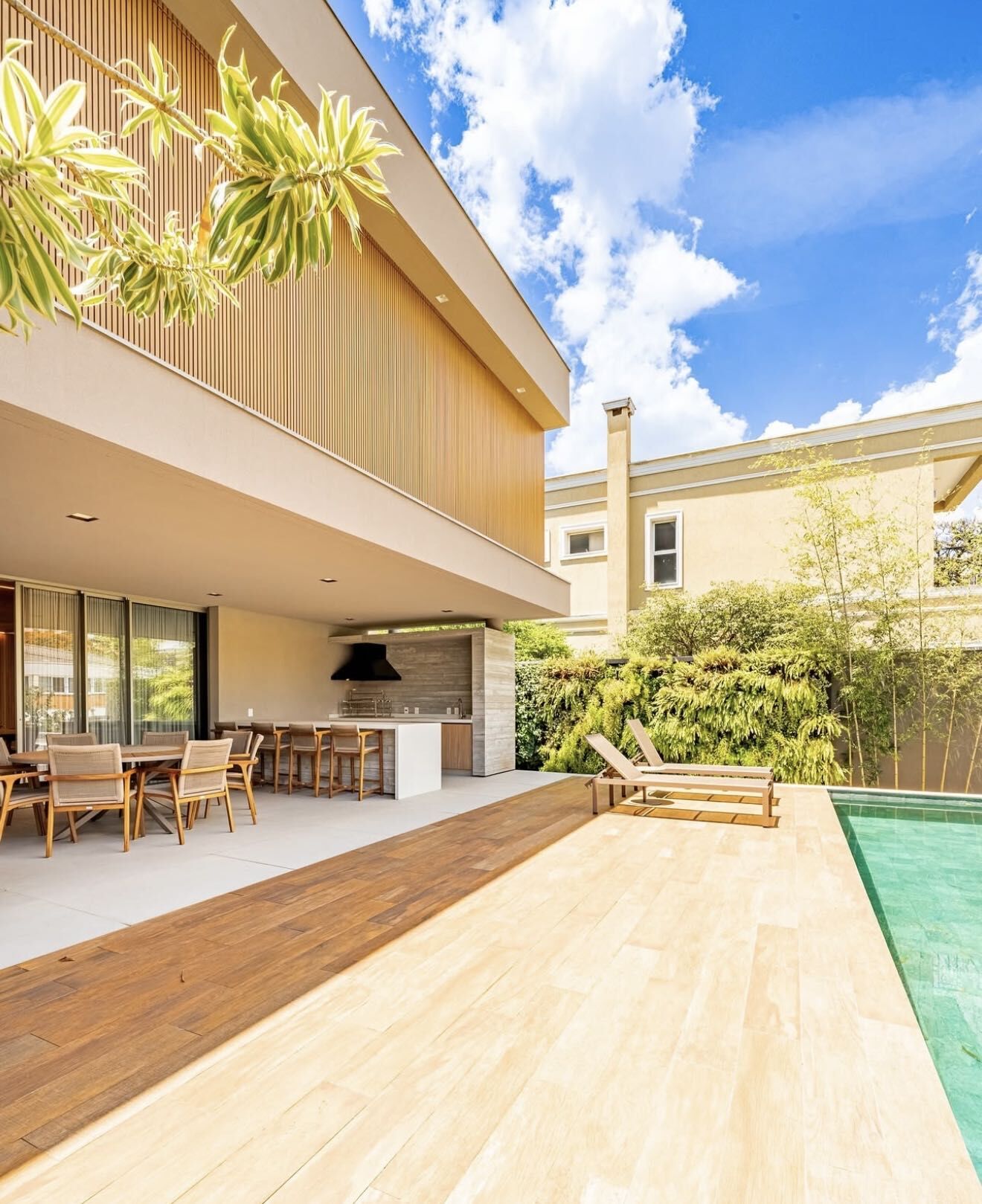 Living e jantar integrados com a área de lazer