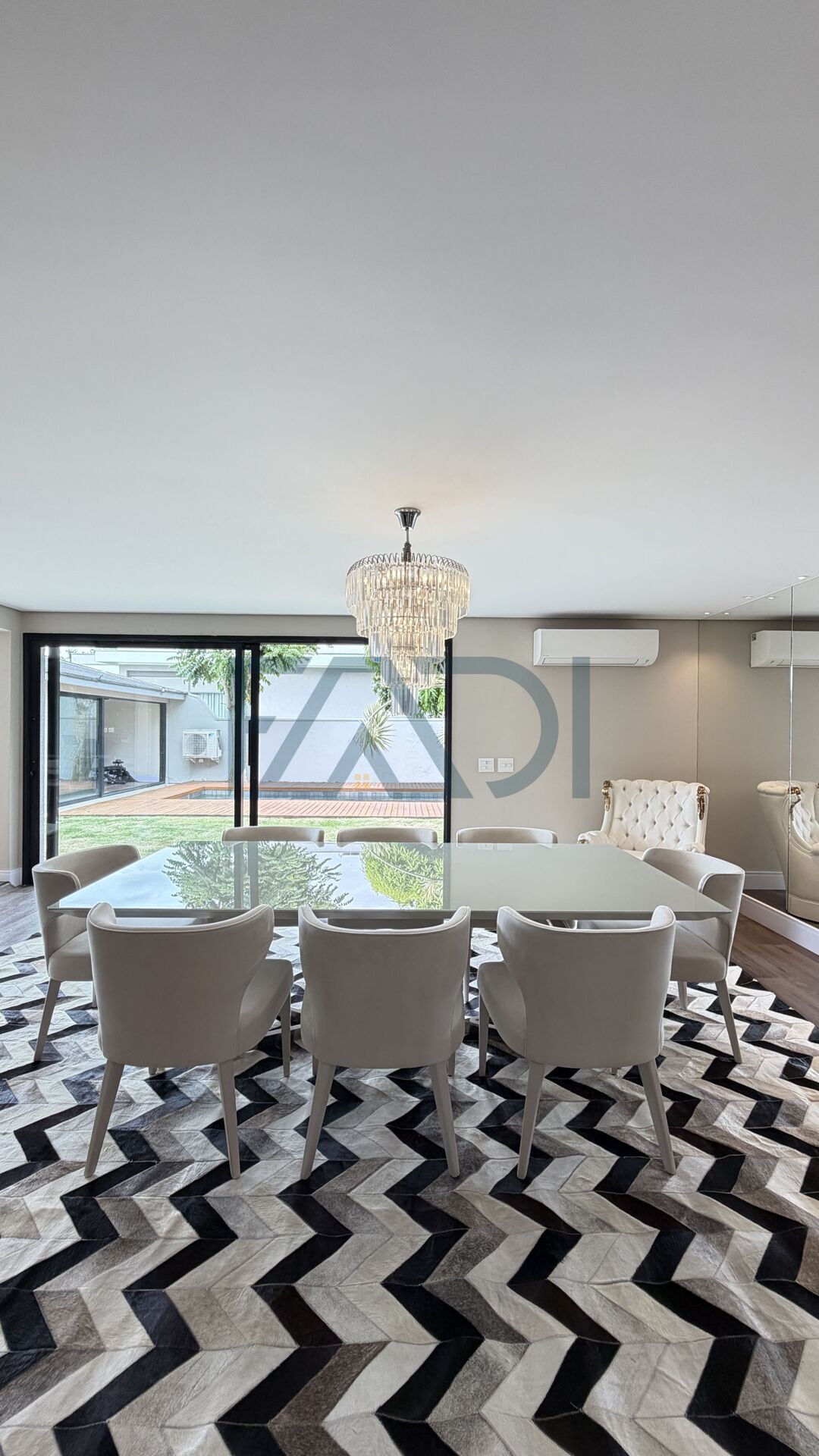 A casa conta ainda com academia, piscina com deck além de uma sala de estar, sala de jantar e cozinha integradas de frente para a piscina.