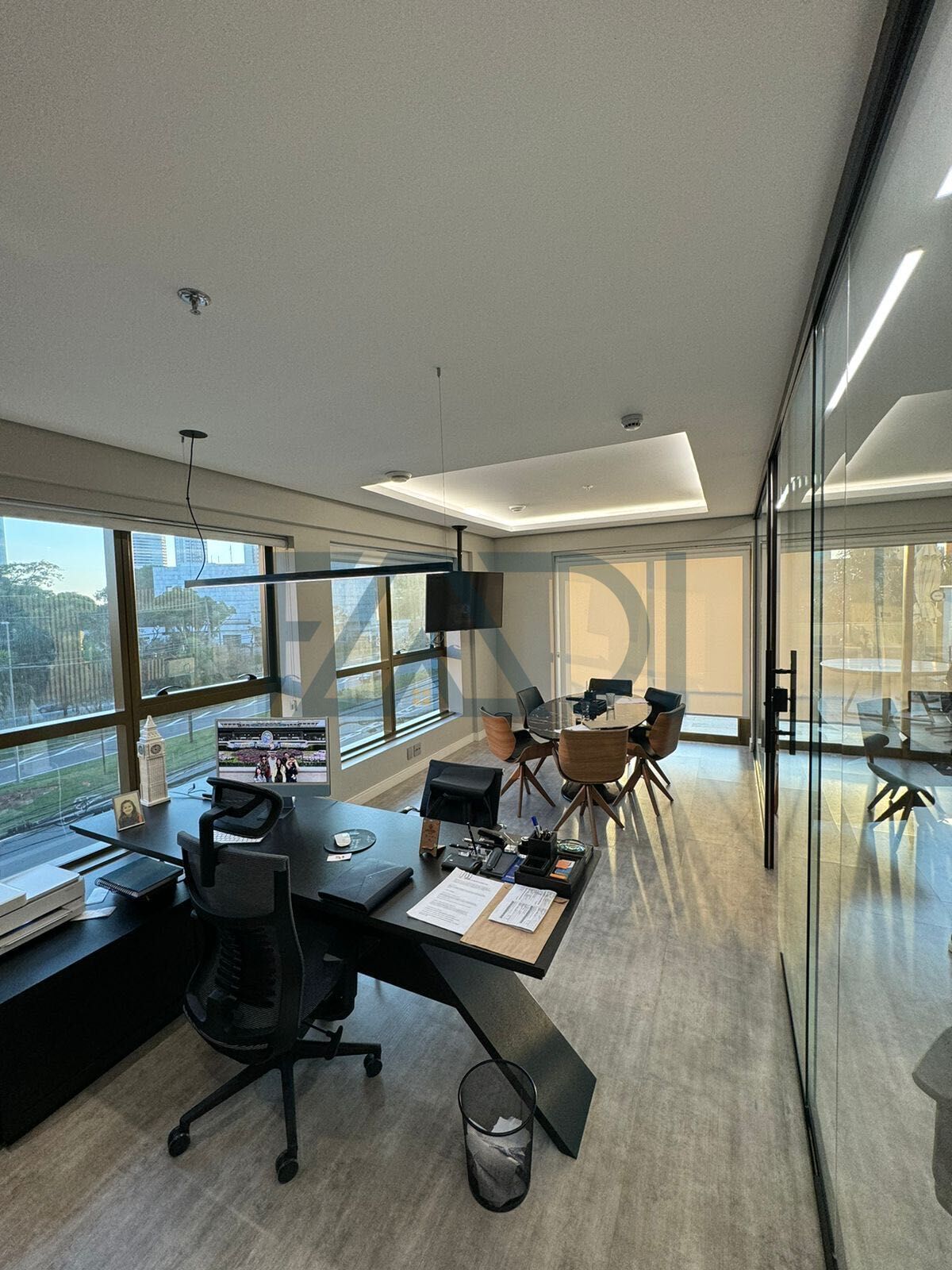 A Sala tem luminárias de Led, Ar Condicionado de 36.000 Btus, banheiro e copinha.