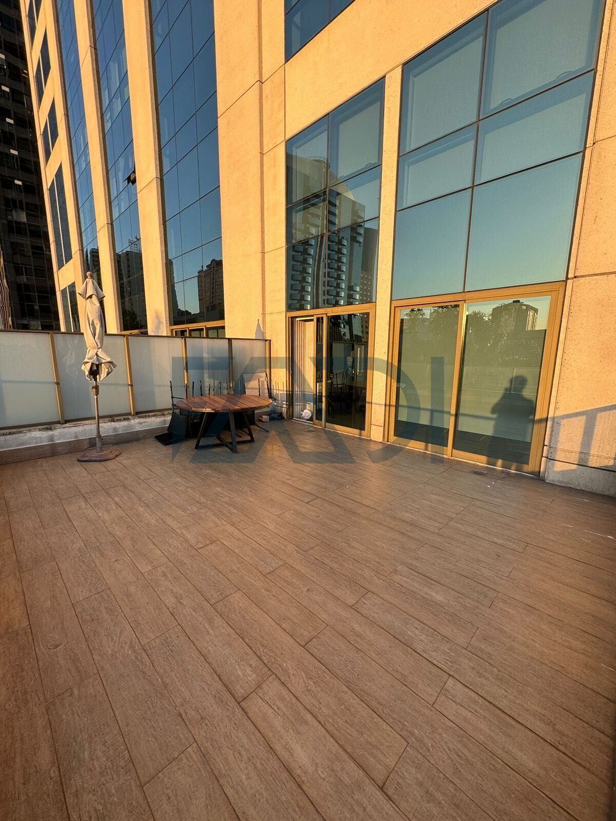 A Área total da sala é de 91,49 m², sendo 58,47 m² da sala em si + 33,02 m² de terraço privativo.
