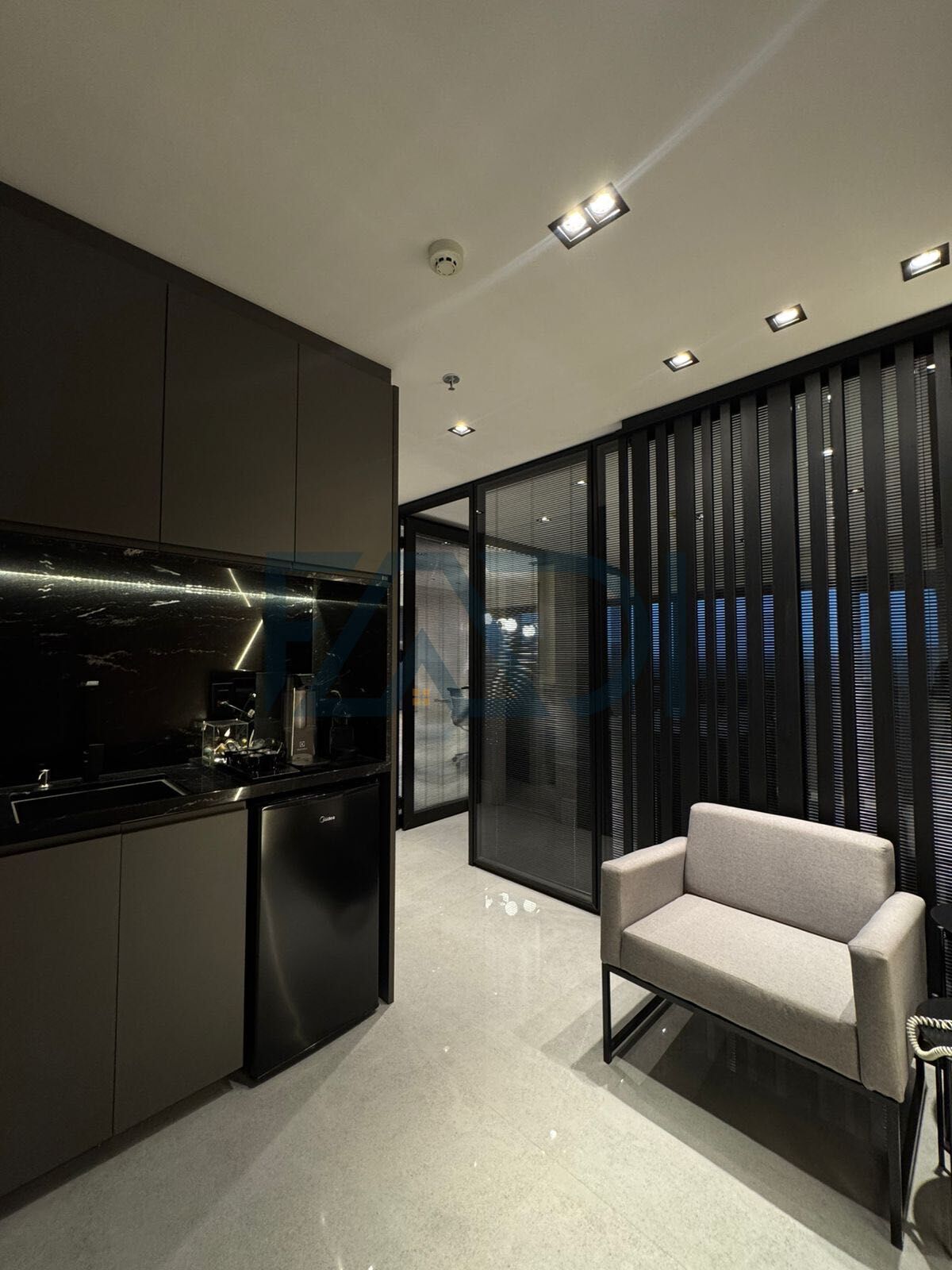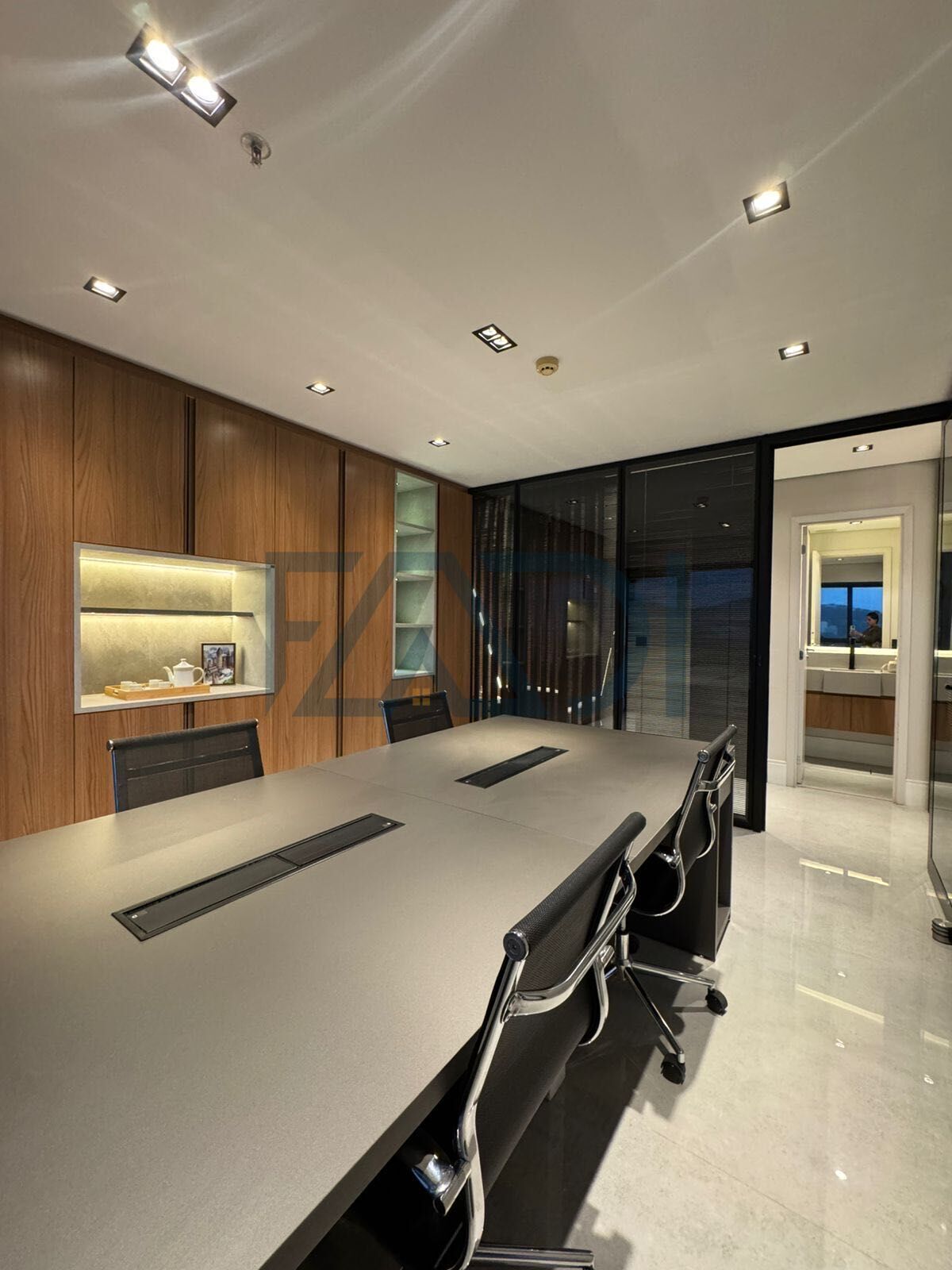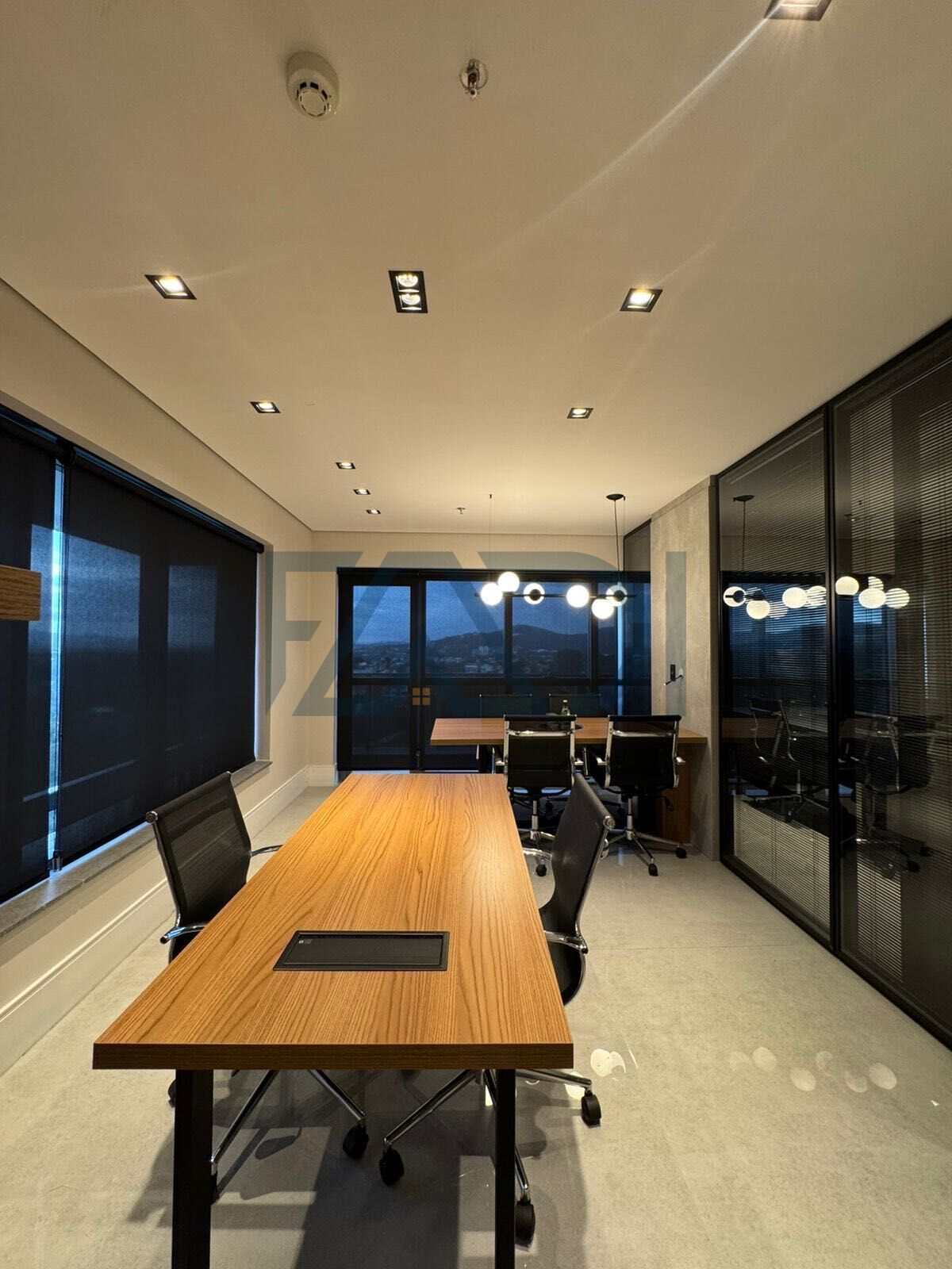 •2 ambientes com divisórias de vidro e persianas reguláveis